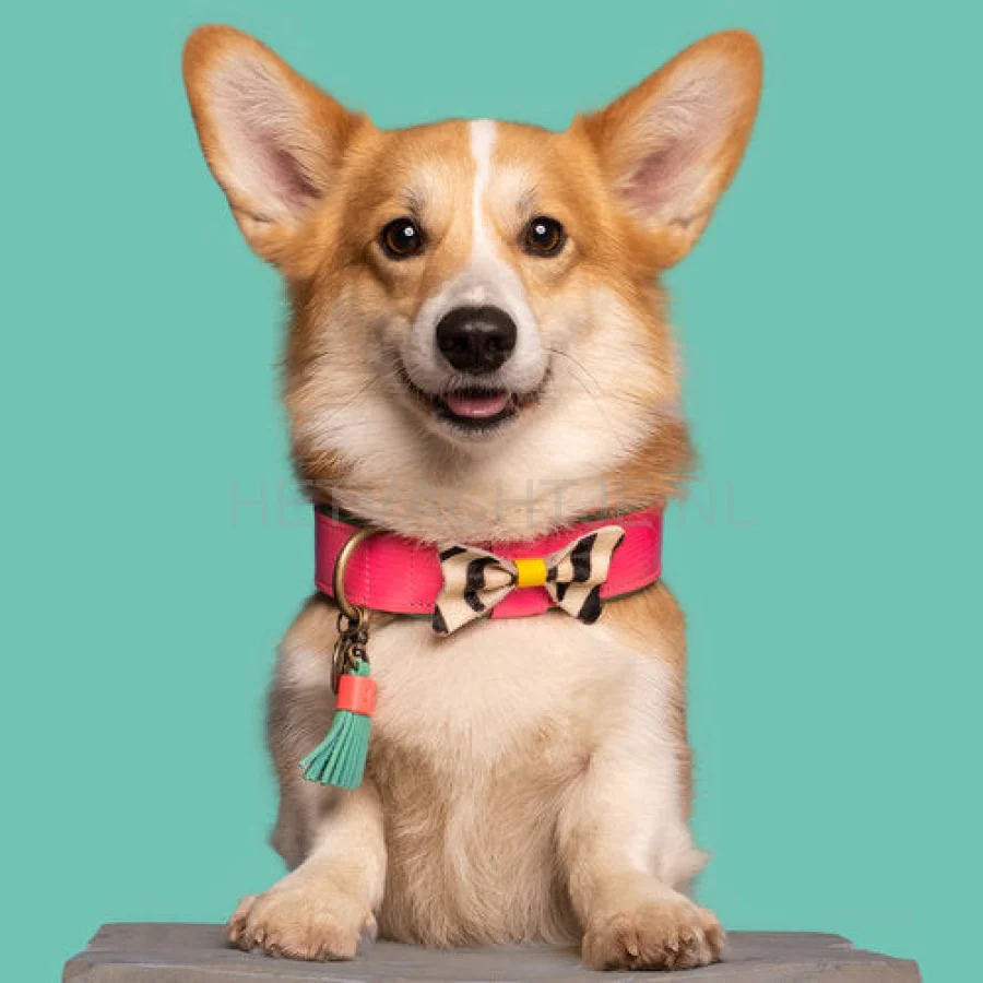 Dit is toch wel de meest kleurrijke DWAM combo voor de zomer. Een normale strik is ook maar zo gewoon toch? Precies, dat dachten wij ook. Deze prachtige roze halsband is afgemaakt met een zebrastrik, een zachte DWAM turquoise binnenkant en gele details. Dit is de perfecte halsband voor als je twijfels tussen opvallend en vrolijk. Deze halsband is namelijk allebei. Een winnaar voor elke hond, maar ook voor elk baasje.