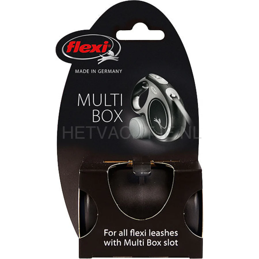 De flexi Multi box is een poepzakhouder en/of een snackbox. Voor lekkernijen of uitwerpselen. Geschikt voor de flexi New Comfort, flexi New Classic, flexi New Neon en flexi Black Design S, M en L.