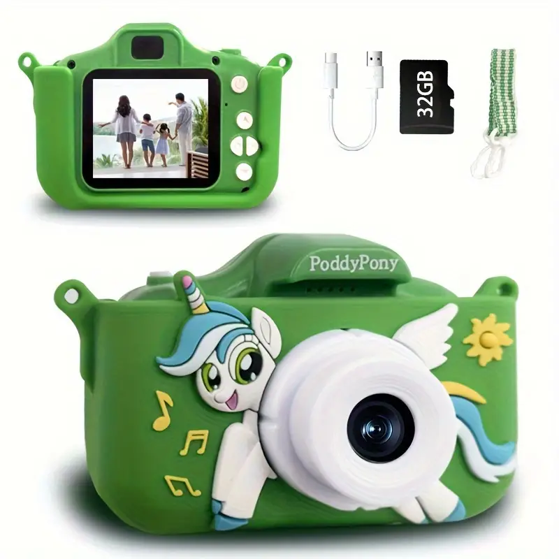 Wil je je kinderen verrassen met een cadeau dat hun fantasie laat bruisen en hun avonturen vastlegt? Probeer onze coole speelgoedcamera! Het wordt geleverd met een 32GB geheugenkaart, dus ze kunnen zoveel foto’s en video’s maken als ze willen.