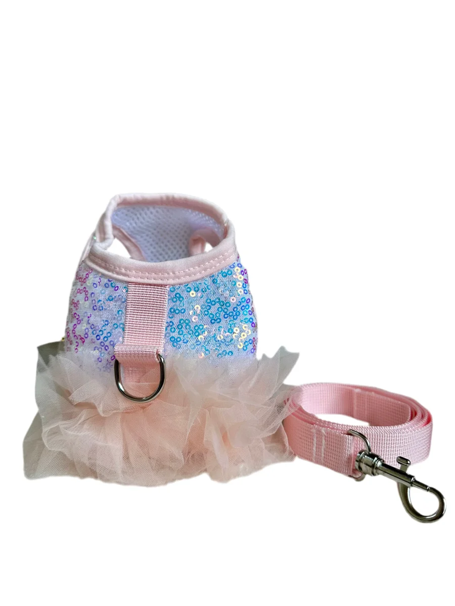 Laat jouw hondje schitteren als een echte ster met het Tuigje Mermaid Roze met lijn. Dit luxe hondentuigje is speciaal ontworpen voor kleine hondjes die gezien willen worden. In een zachte roze kleur, volledig afgewerkt met glinsterende pailletten met een holografische glans, is dit tuigje een droom voor elke hondenprinses.