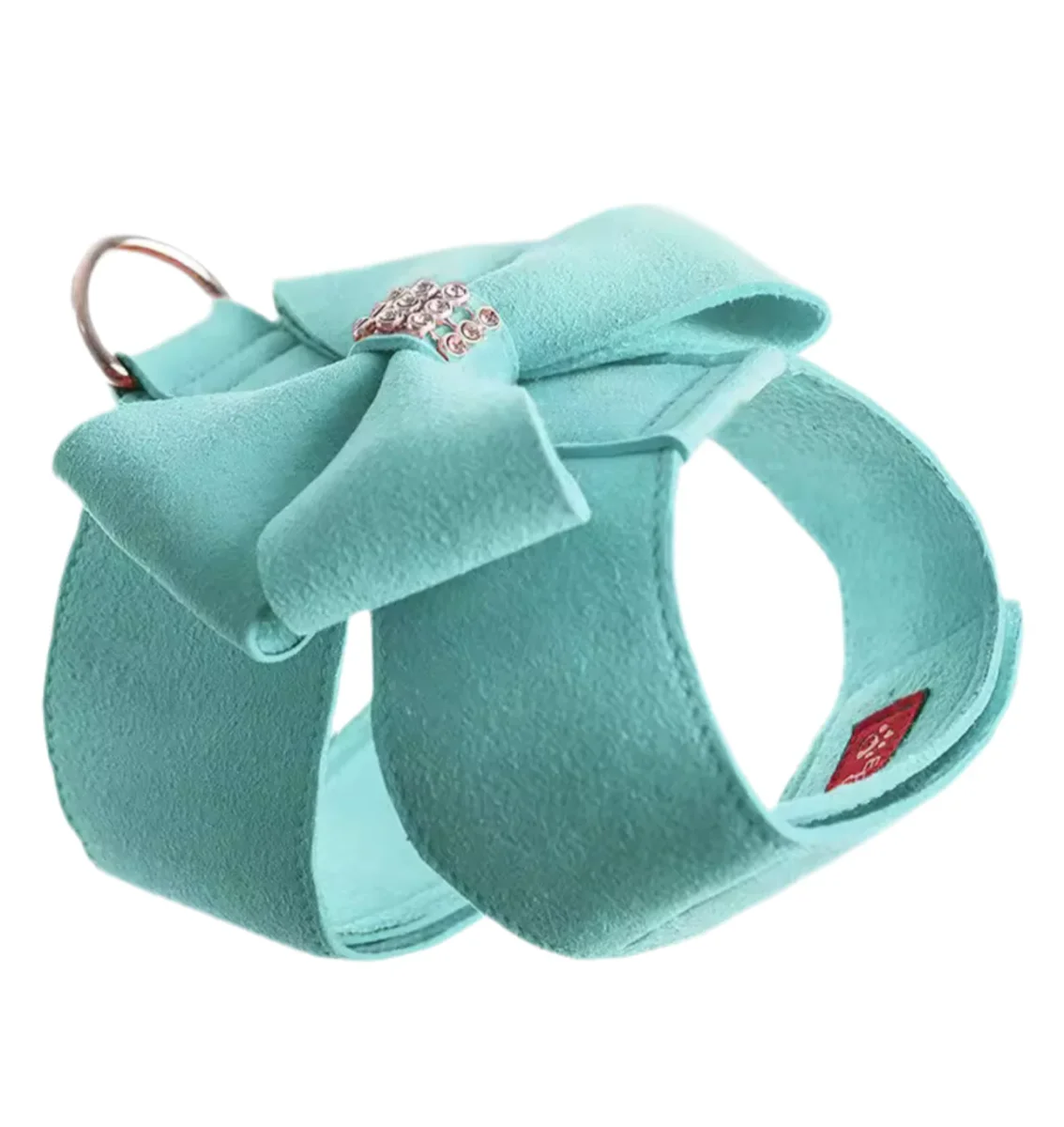 Geef jouw hondje de ultieme combinatie van luxe, comfort en veiligheid met het prachtige Tuigje Nova met bijpassende lijn. Dit unieke hondentuigje is gemaakt van zachte suède stof die lief is voor de vacht en huid van je hond. Het tuigje is niet alleen functioneel, maar ook een echte eyecatcher. Bovenop de rug siert een elegante strik, afgewerkt met schitterende diamantjes en blingbling steentjes in het midden. Zo loopt jouw hond altijd in stijl!