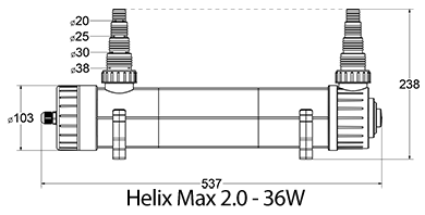 is een UV-C filter en zorgt ervoor dat eencellige algen verwijderd worden. Het water van uw zout of zoetwater aquaria wordt hierdoor weer kristal helder. Door de filtering van de Aqua Medic Helix Max 2.0 worden bacteriën en andere in water levende parasieten geïnactiveerd. Dit verminderd het risico op infecties bij uw vissen. Door de spiraalvormige waterloop en het grote volume van de Aqua Medic Helix Max 2.0 wordt een optimale waterzuivering bereikt. Het water wordt spiraalvormig met een lange contacttijd aan de UV lamp voorbij gevoerd. De UV straling wordt hierdoor optimaal benut.