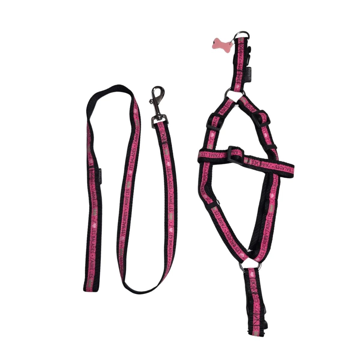 Dit setje met een riem en tuigje is een vrolijk gekleurd setje, wat super makkelijk aan te doen is! Met dit harnas, felgekleurd, kan uw hond gemakkelijk worden gezien. In gevlochten nylon, het is zeer sterk en sluit gemakkelijk met een clipgesp. En om een chique noot toe te voegen, heeft het een flexibele botvormige hanger.