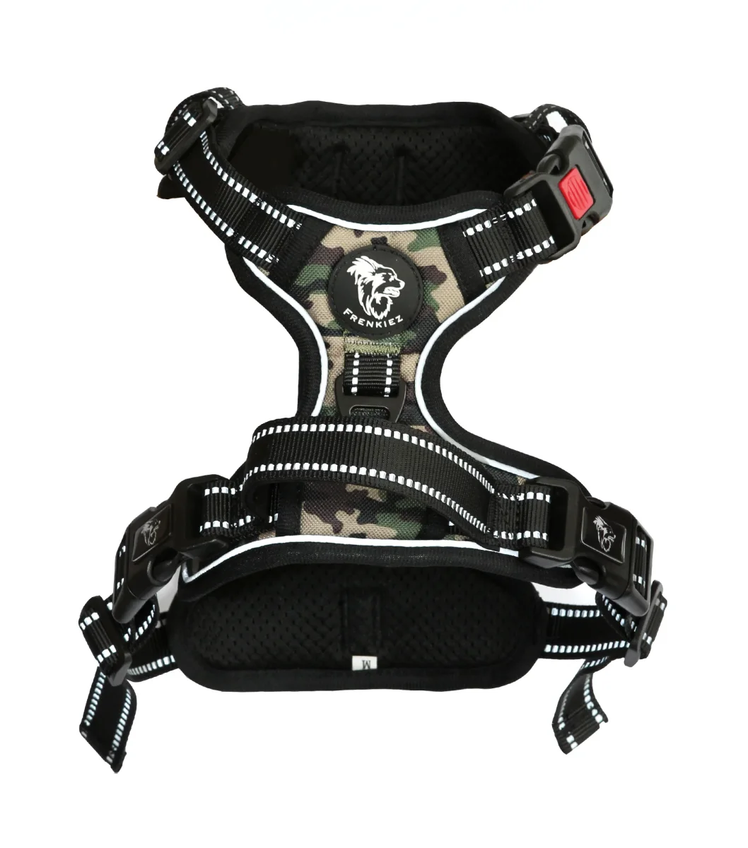 Dit verstelbare harnas heeft 2 handige gespen op de buikriemen en 1 vergrendelbare clip in de nek voor gemakkelijk aan- en uit doen, zonder dat je het over het hoofd van de hond moet doen. Ons no pull hondentuig heeft twee stevige metalen ringen waar de looplijn aan kan bevestigen. Op de bovenkant van het tuig zit een stevige metalen ring, en aan de voorkant van het tuig zit ook een ring, welke te gebruiken is voor honden die hard aan de lijn trekken. Het hondentuig is zacht ademend met mesh stof, de trekdruk wordt gelijkmatig over het lichaam verdeeld om verstikking te voorkomen. Dit stevige hondenharnas is perfect voor dagelijks wandelen, hardlopen, trainen, jagen, buitenavonturen en nog veel meer!
