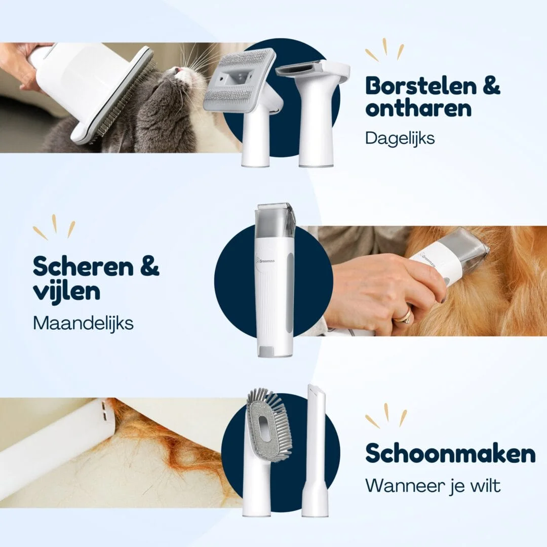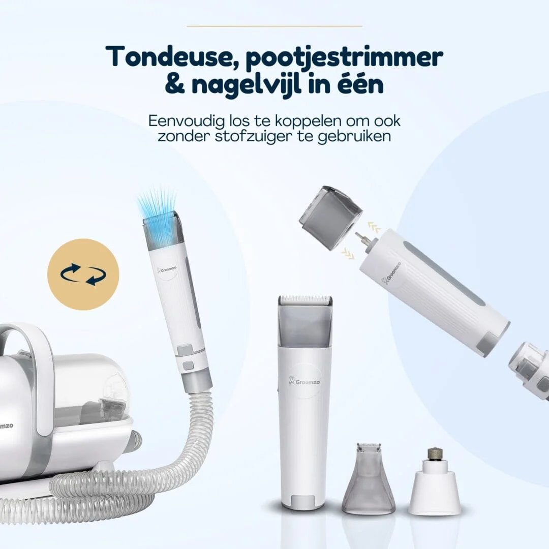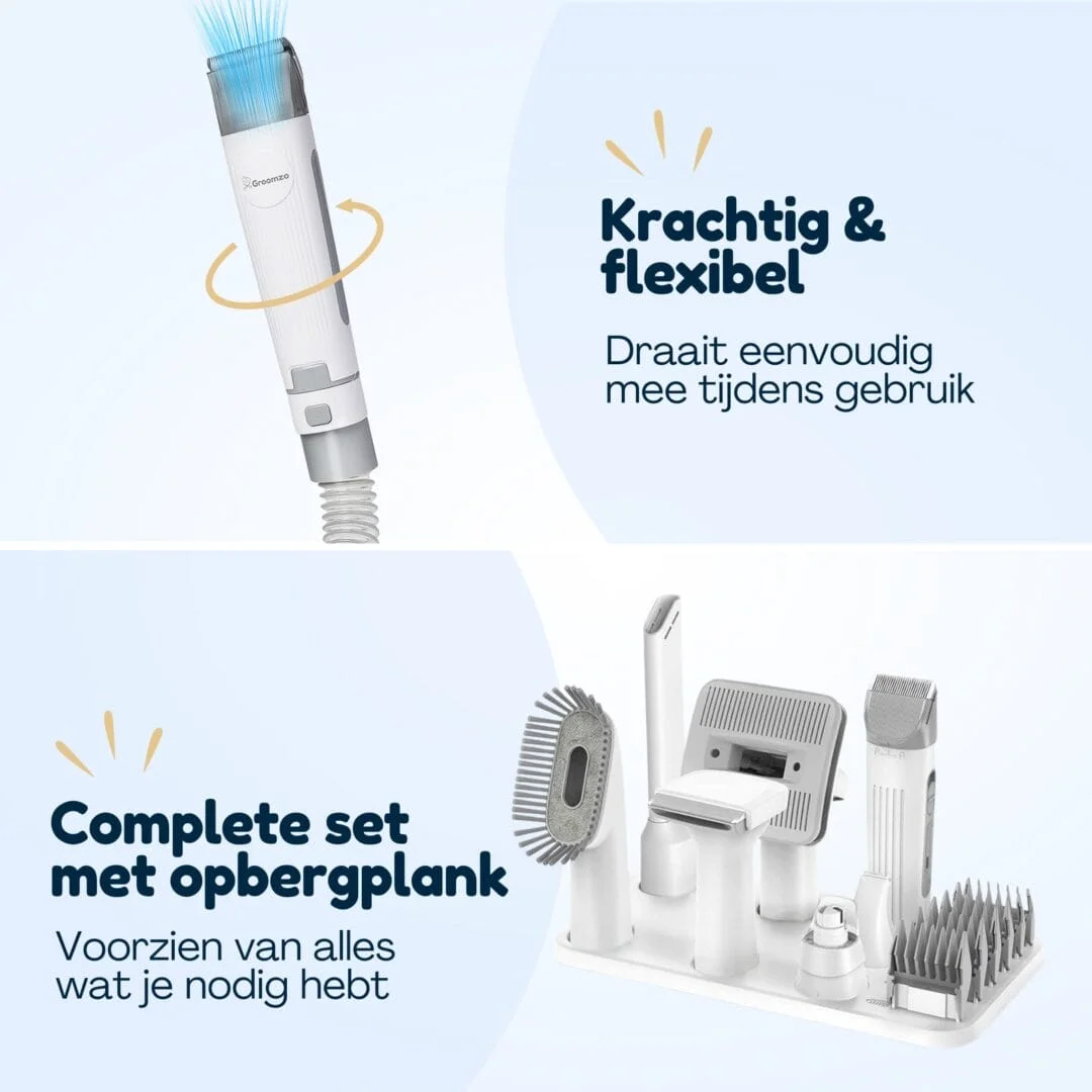Groomzo Professionele 20-Delige Verzorgingsset – Dierentondeuse – Zuigen & Trimmen – Complete Set – Fluisterstil – Katten & Honden Trimset