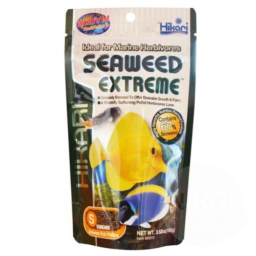 Hikari Marine Seaweed Extreme small is geschikt voor herbivoren zeevissen, kunnen ook worden gebruikt als aanvullende voeding voor de meeste omnivoren soorten, zoals clownfish en vlindervissen.