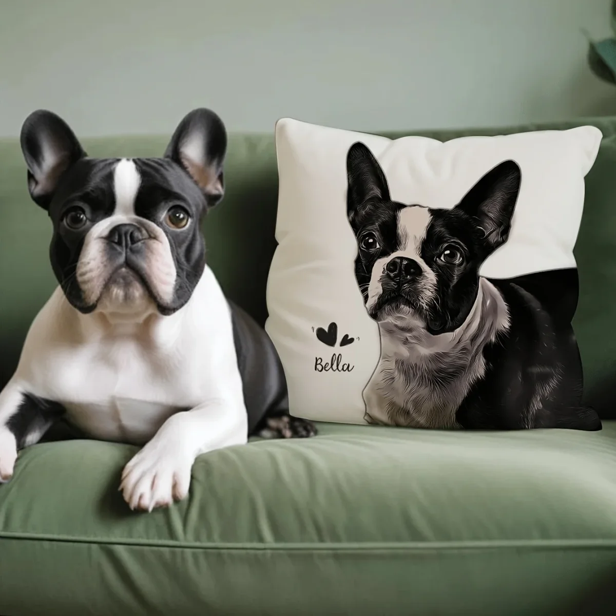 Breng jouw hond elke dag een beetje dichterbij met deze gepersonaliseerde fotokussensloop. De foto en naam van jouw hond worden liefdevol verwerkt tot een stijlvol kussen dat warmte, trots en herinnering uitstraalt – perfect voor op de bank of in bed.