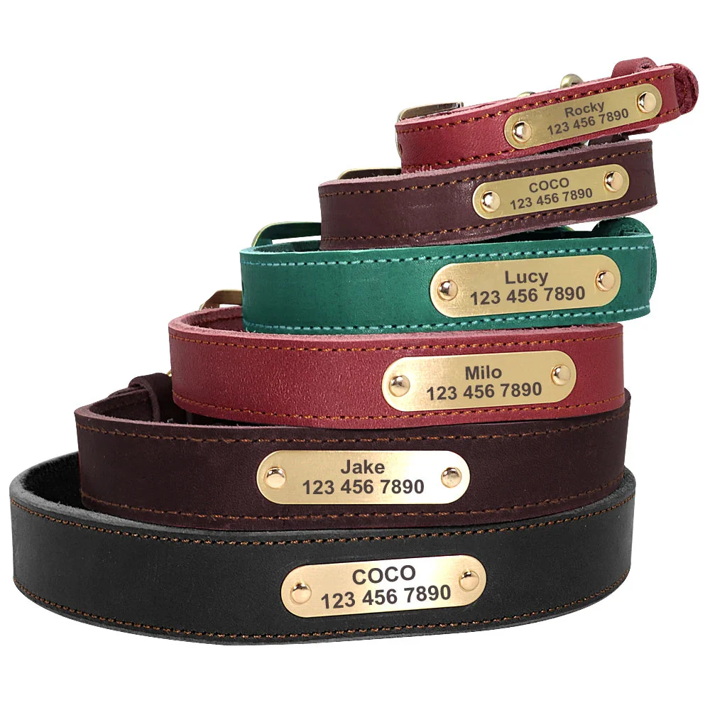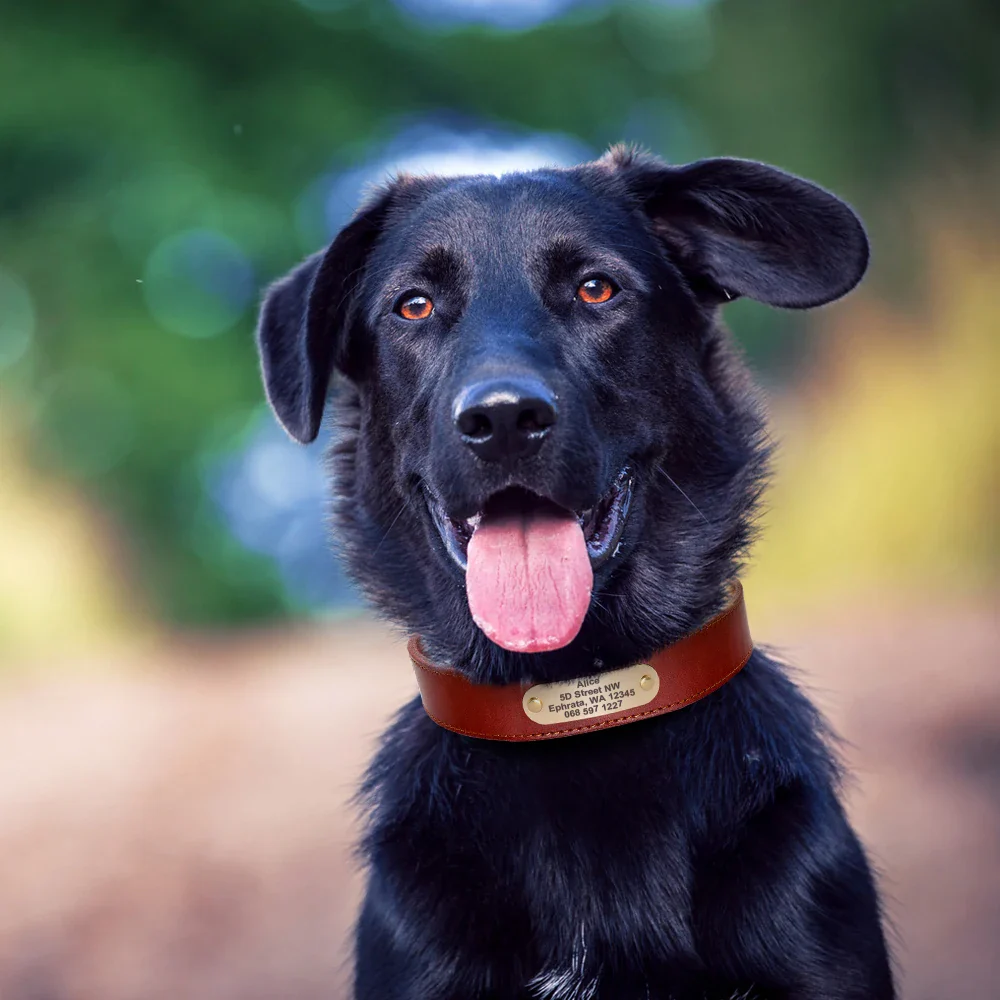 Luxe Brede Leren Hondenhalsband met Naam – Veilig en Stijlvol