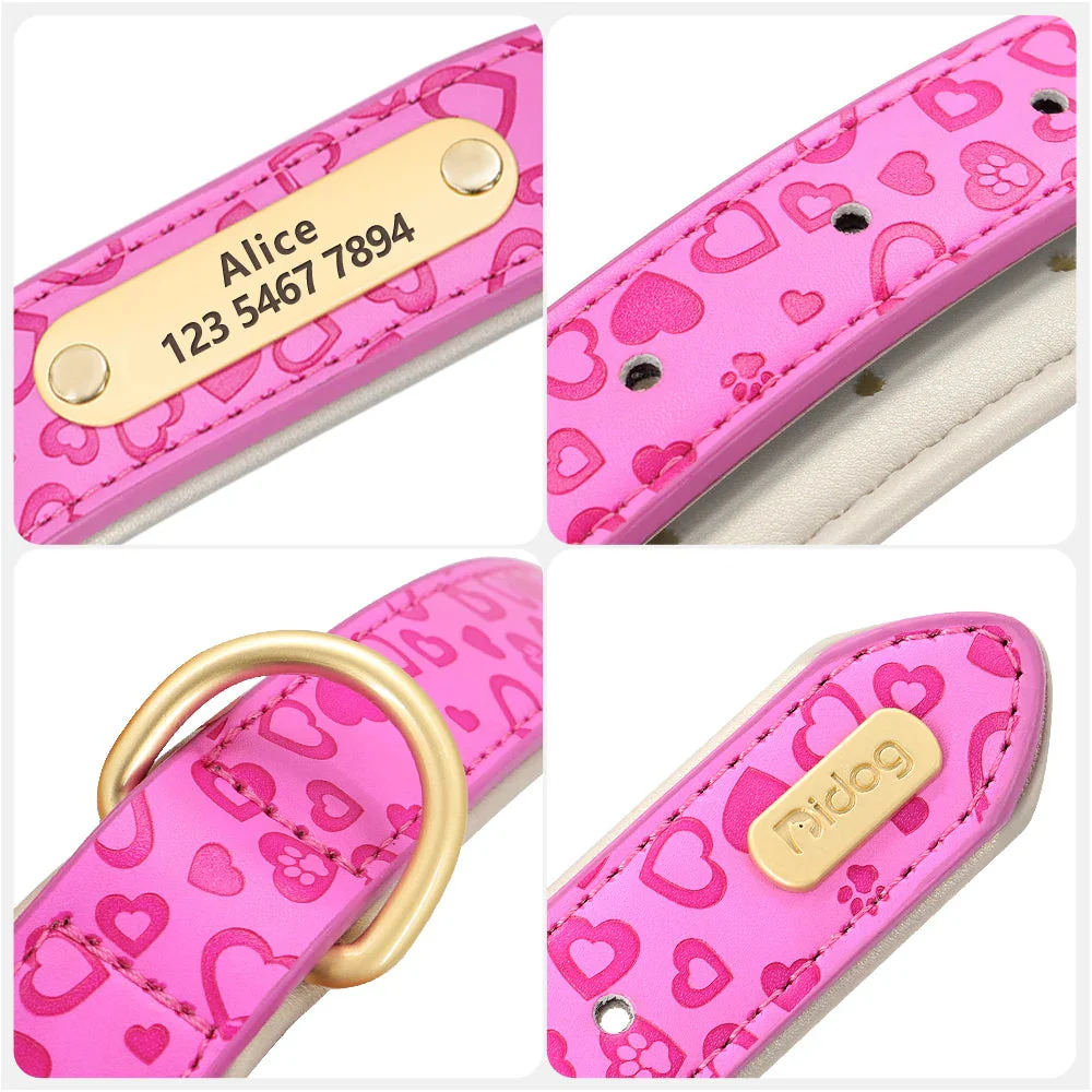 Met deze gepersonaliseerde hondenhalsband met hartjes geef je je hond een liefdevolle en stijlvolle uitstraling. Het zacht gewatteerde leer zit comfortabel om de hals, terwijl de gegraveerde naamplaat zorgt voor extra veiligheid tijdens elke wandeling. Een perfecte combinatie van uitstraling, comfort en zekerheid.