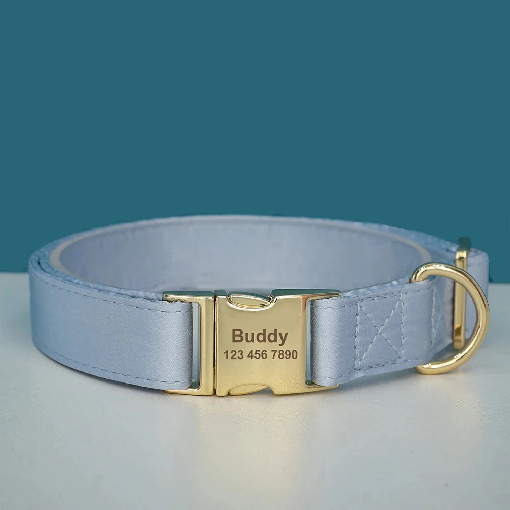 Met deze fluweelzachte hondenhalsband geef je je hond een stijlvolle en comfortabele accessoire voor elke dag. De zachte velvet stof voelt prettig aan om de hals, terwijl de gravering met naam en telefoonnummer zorgt voor extra veiligheid. Een perfecte mix van uitstraling, comfort en betrouwbaarheid.