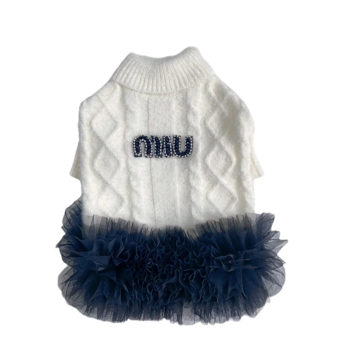 Deze witte hondentrui met tule is ideaal voor Pomeranians, Chihuahua’s, Maltezers en andere kleine hondenrassen. Combineer de trui met luxe accessoires zoals een glinsterende hondenriem of een bijpassende haarclip voor een complete designerlook.