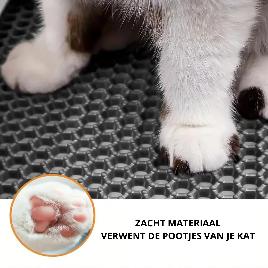 Deze kattenbakmat met dubbele laag biedt optimale bescherming tegen uitgestrooid kattengrit en zorgt voor een schone en opgeruimde omgeving rondom de kattenbak.