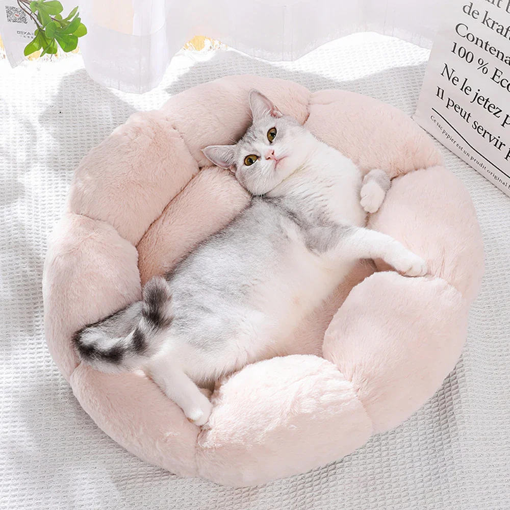 Geef je huisdier de slaapervaring die het verdient met dit luxe bloemvormige kussen! Gemaakt van hoogwaardig, zacht konijnenvachtmateriaal en gevuld met dik 3D PP-katoen voor ongeëvenaard comfort. Perfect voor katten en kleine honden die genieten van een warme, veilige rustplek.