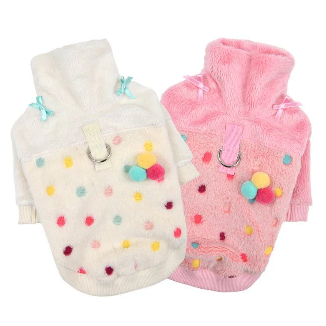 | Features | * Winter turtleneck shirts with integrated harness * Polka Dot pattern and solid schemed * Decorated with pompom corsage on the back * Brown Pinkaholic label on the back |