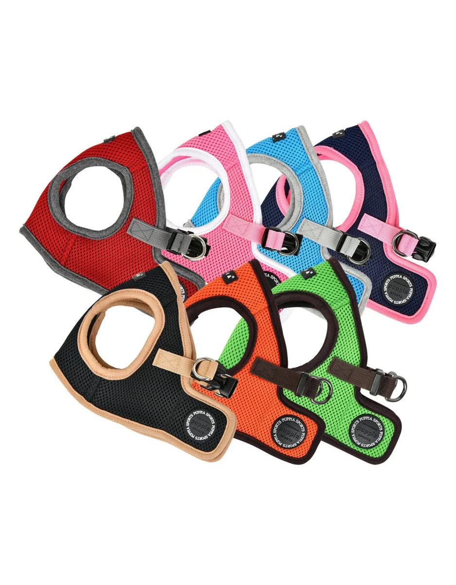 Het Puppia Soft Harness II is verkrijgbaar in verschillende kleuren: Wine, Pink, Green, Orange, Sky blue, Navy & Black