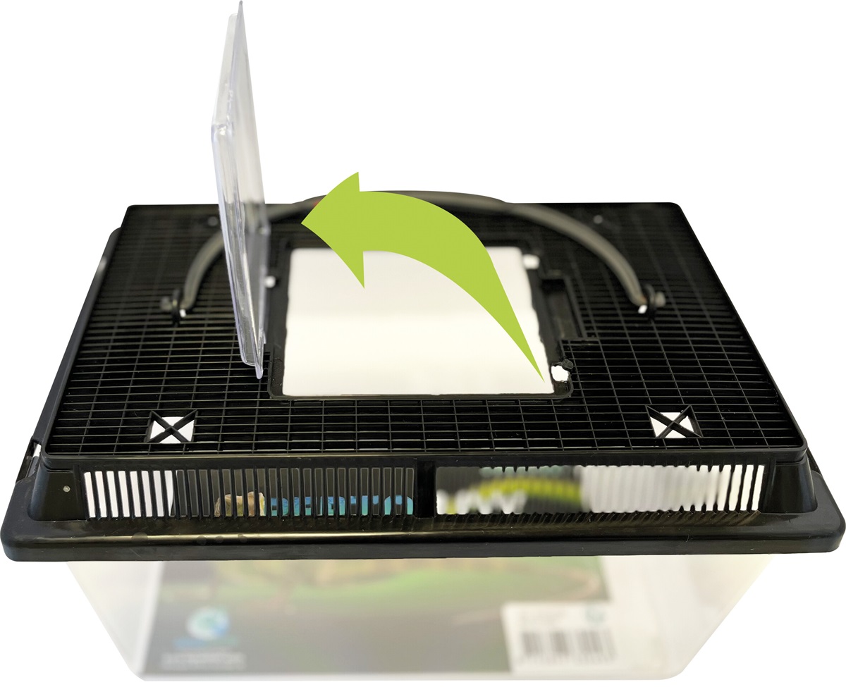 - Kies een bak met een veilige manier om de voedseldieren in en uit te halen.