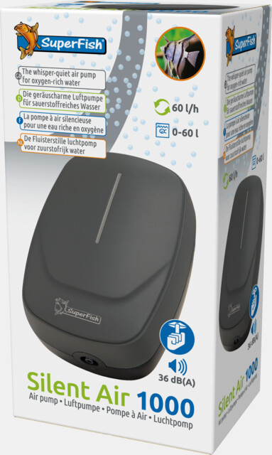 De Superfish Silent Air 1000 is gebouwd voor langdurig gebruik en wordt geleverd met 2 jaar garantie. Dit geeft extra zekerheid dat je een product in huis haalt dat niet alleen stil en efficiënt is, maar ook betrouwbaar. Superfish staat bekend om zijn degelijke aquariumtechniek, en deze luchtpomp is daarop geen uitzondering. Dankzij de solide constructie, het stille ontwerp en de energiezuinige werking is dit een investering waar je jarenlang plezier van hebt.