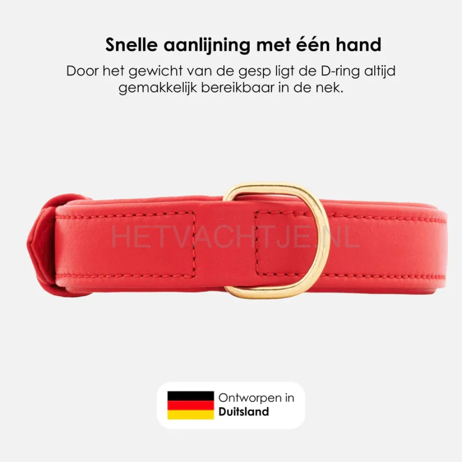 De Plain hondenhalsband overtuigt over de hele lijn door zijn hoogwaardige materiaalkeuze, optimale functionaliteit en strakke design: 100% doorgeverfd en dus slijtvast echt leder ontmoet gespen van stevig messing. De dikke vulling aan de binnenkant van de halsband vormt zich naar de nek van de hond en zorgt voor een bijzonder comfortabele pasvorm. De gevouwen lederen randen ronden het strakke design vakkundig af.