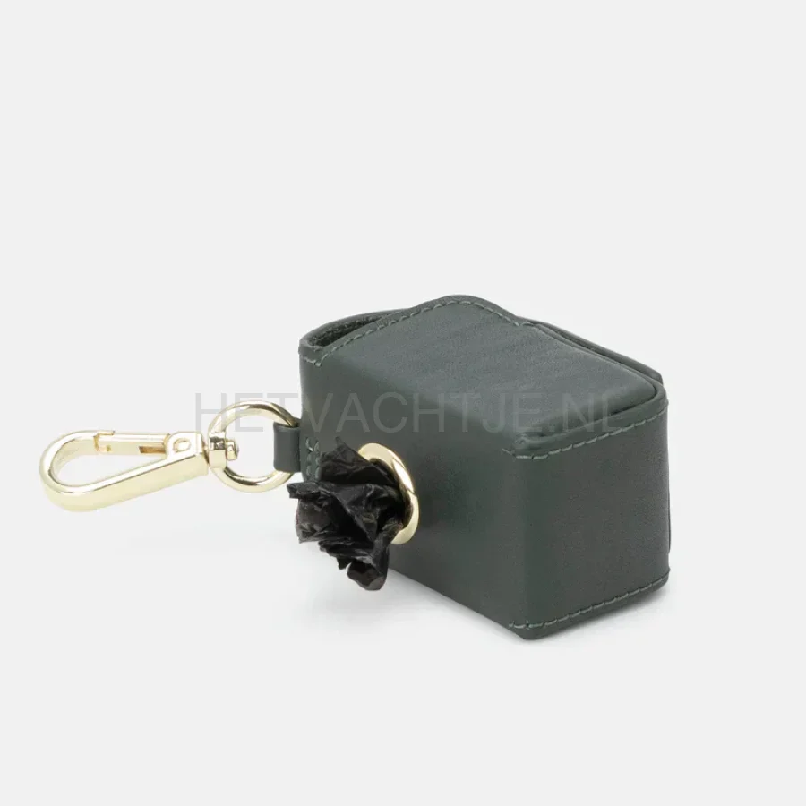 Het gelegeerde messing beslag benadrukt het elegante karakter van de dispenser en past harmonieus in het verfijnde ontwerp. Een magnetische sluiting houdt de poepzakjes veilig binnenin en ze kunnen er gemakkelijk en handig worden uitgetrokken via een ronde opening aan de achterkant. De zorgvuldige afwerking en het gebruik van hoogwaardige materialen maken van deze poepzakjesdispenser een stijlvol en praktisch accessoire voor veeleisende hondenbezitters.