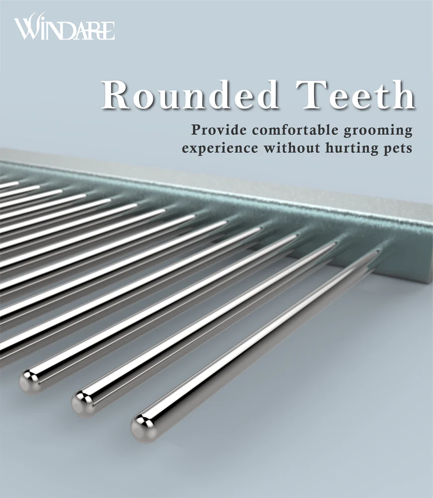 De brede tanden van de WindarePro Kam zijn perfect om hardnekkige klitten en knopen uit de vacht te verwijderen, terwijl de smalle tanden zorgen voor een zijdezachte afwerking. Dit maakt de kam ideaal voor zowel professionele trimmers als huisdiereigenaren die hun hond of kat zelf willen verzorgen.